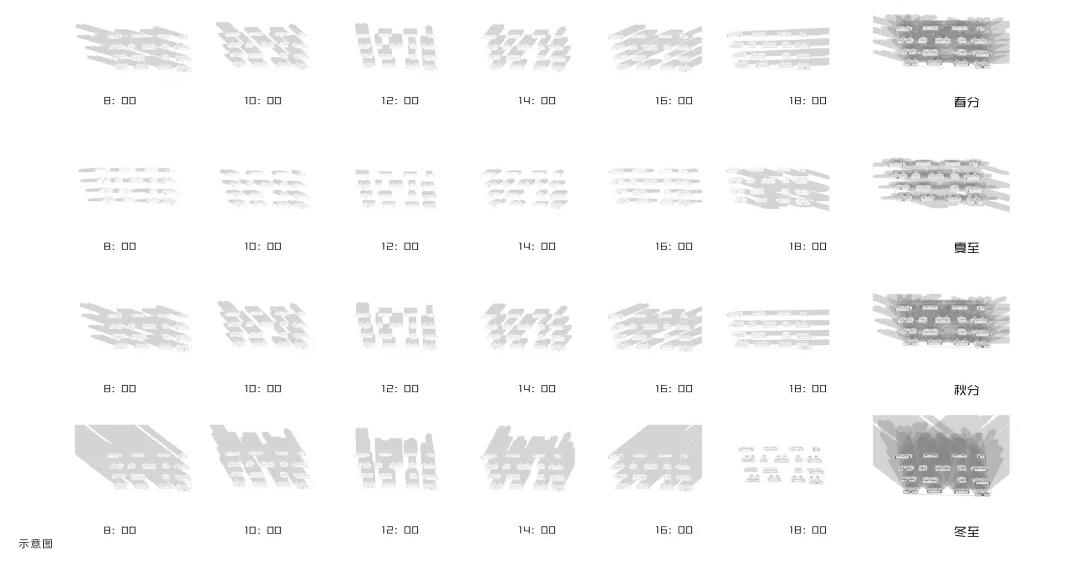 在园林设计之初,考虑到了光照对健康的影响,利用电脑分析模型,对四季日照进行了精准的模拟分析,并综合考量不同节气,不同时间的光照角度,结合不同年龄人群对日照的需求,精心划分儿童、青年、老人的室外活动天地。
